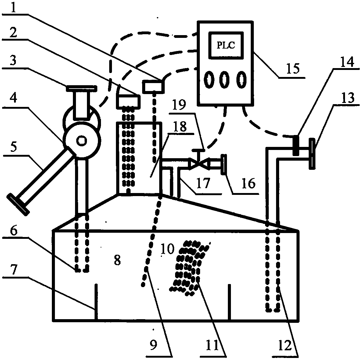 本發明的上述設備中所述的自控裝置是PLC程序控制器、人機交互觸摸屏、熱繼電器、斷路器、通信電纜等組成。