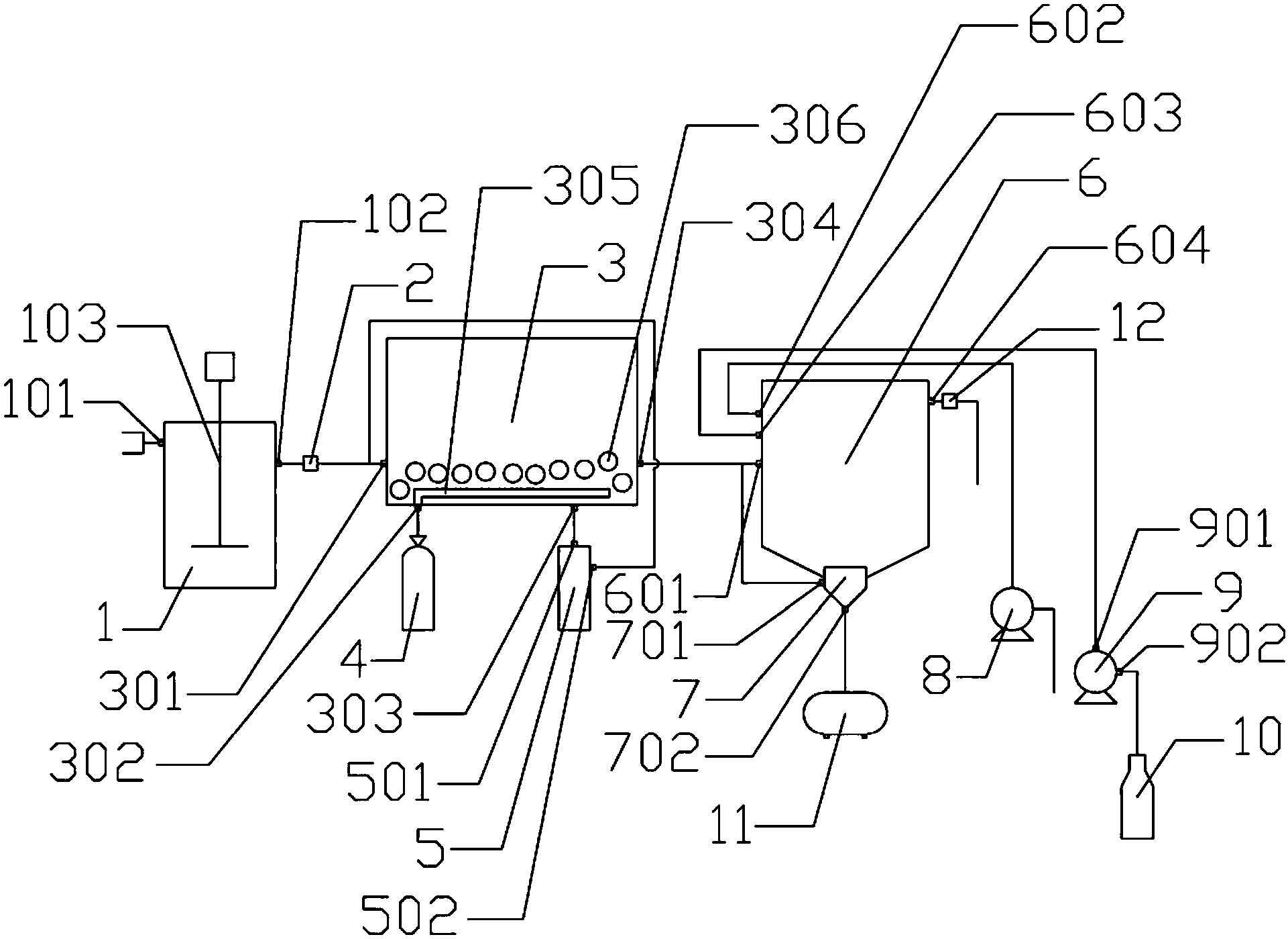 本發(fā)明所述預(yù)處理池的作用為通過攪拌器使船舶灰水與船舶黑水混合液在預(yù)處理池內(nèi)進行粉碎及混勻。