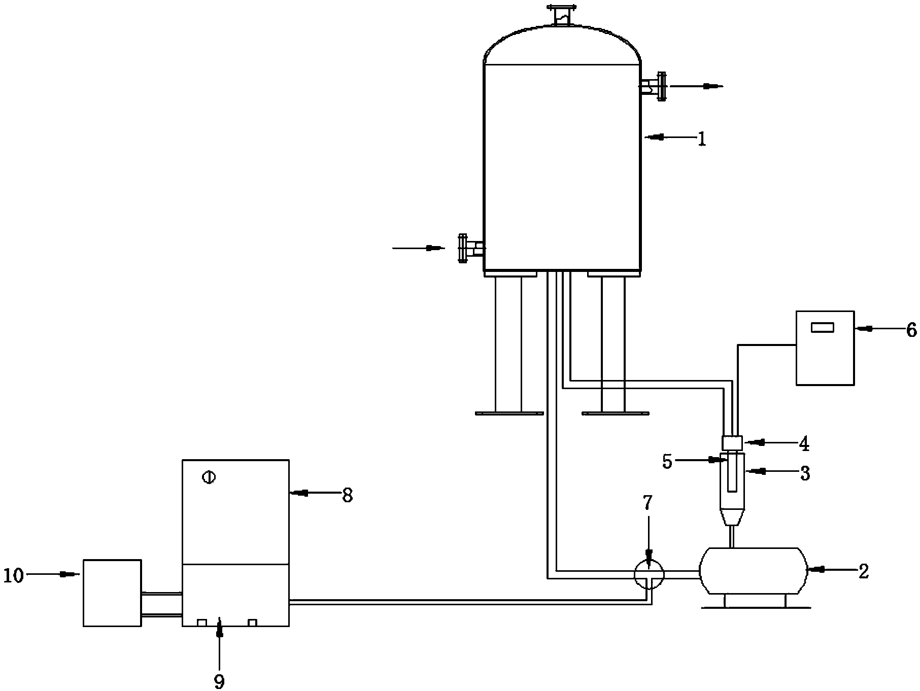 與現(xiàn)有技術相比,本發(fā)明的有益效果是:本發(fā)明的污泥減量設備能夠適應3000-30000mg/l污泥的減量化處理,其通過臭氧以及超聲作用對污泥進行充分的處理,使污泥的性能發(fā)生改變,固體含量也大幅度減少,最終產生了污泥減量的效果,為企業(yè)創(chuàng)造一定的經(jīng)濟效益。