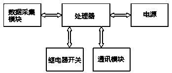 一種污水處理一體化終端設(shè)備,其特征在于,該設(shè)備包括數(shù)據(jù)采集模塊、處理器、電源和繼電器開關(guān),所述的數(shù)據(jù)采集模塊與處理器連接,所述電源與處理器連接,所述繼電器開關(guān)與處理器連接。