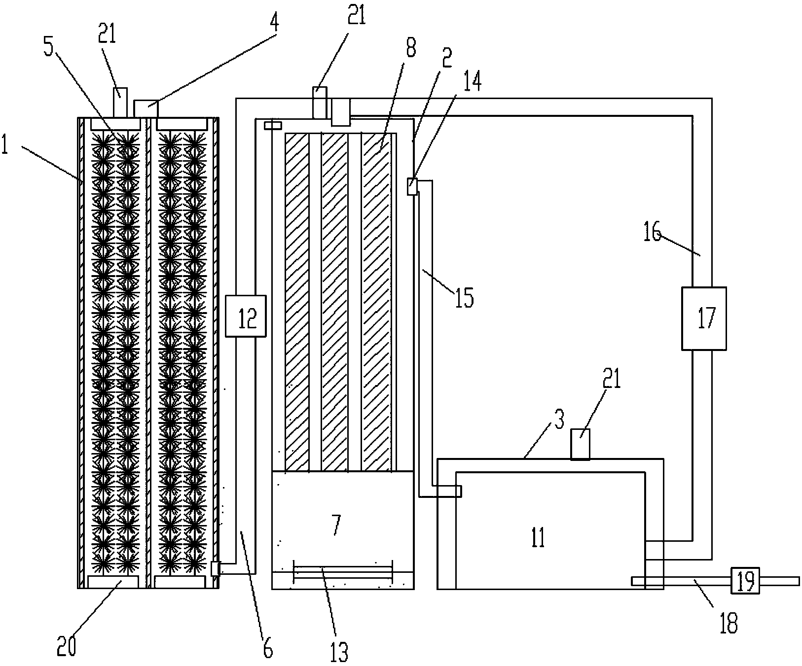 6.根據權利要求5所述的一種中空纖維復合生物膜污水處理設備,其特征在于:所述回流管上安裝有回流泵。