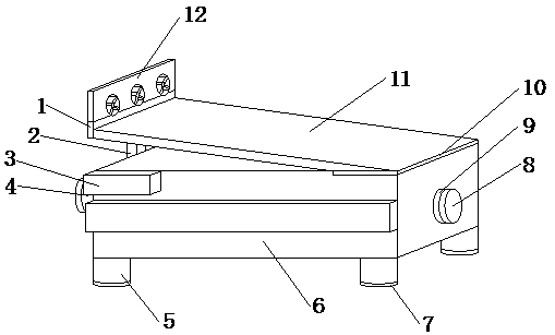進一步地,所述支撐腿設有四個,四個所述支撐腿均固定在裝置外殼下端面上。
