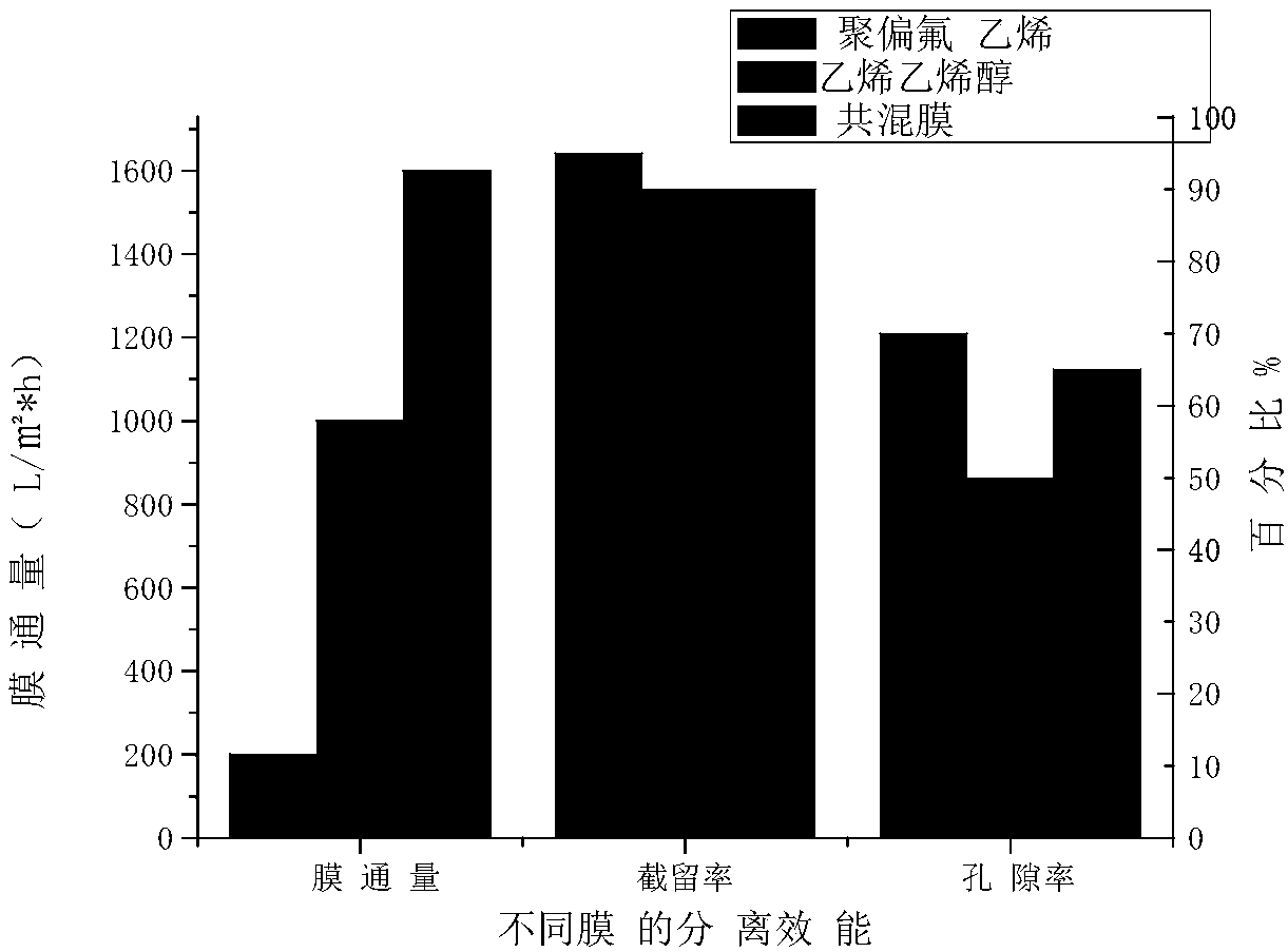 2.本發(fā)明中因主料EVOH的機械性能差,向其中添加了PVDF共混劑,可增大膜的機械性能、抗氧化性能。并且PVDF的引入還可增加EVOH的成孔率,使所制得的改性EVOH膜透水性能進一步增大。