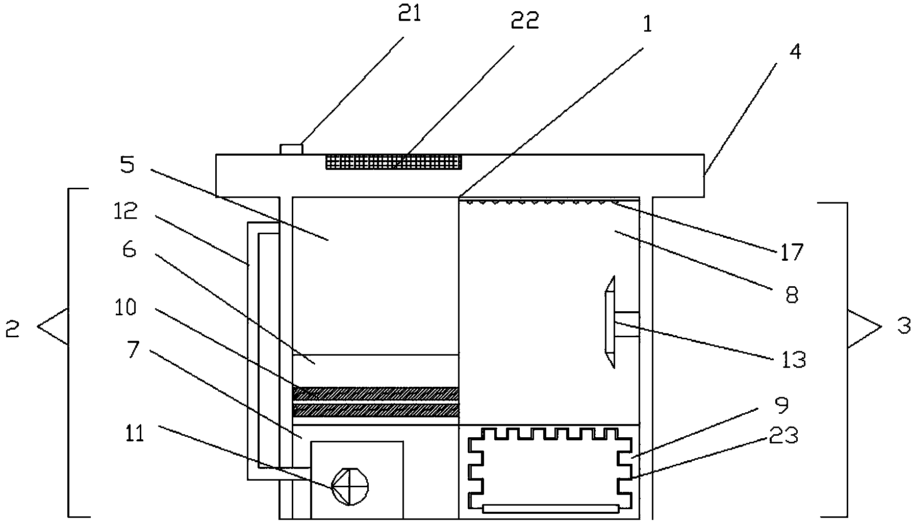 7.根據權利要求1所述的一種基于物聯網的攪動排污水產品飼養裝置,其特征在于:所述頂蓋(4)的左上側設有控制開關(21),所述控制開關(21)設為總電源開關。
