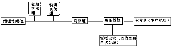③將粉煤灰與污泥濃縮液進行均質后進入高壓板框進行脫水;