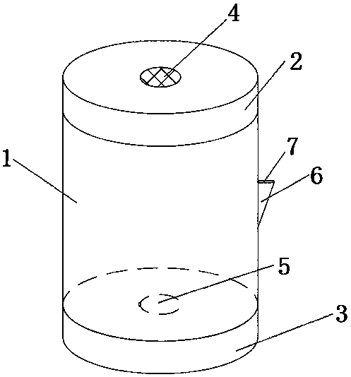 1.一種廢水樣品采集桶,其特征在于,包括上蓋、桶身和底蓋,上蓋和底蓋與桶身通過螺紋連接,所述上蓋上設有一通氣孔,通氣孔中設有濾網,所述底蓋上開有采樣口,在采樣口桶內側還鉸接一擋板,在桶身上還設有一壺嘴,在壺嘴口鉸接有擋板。