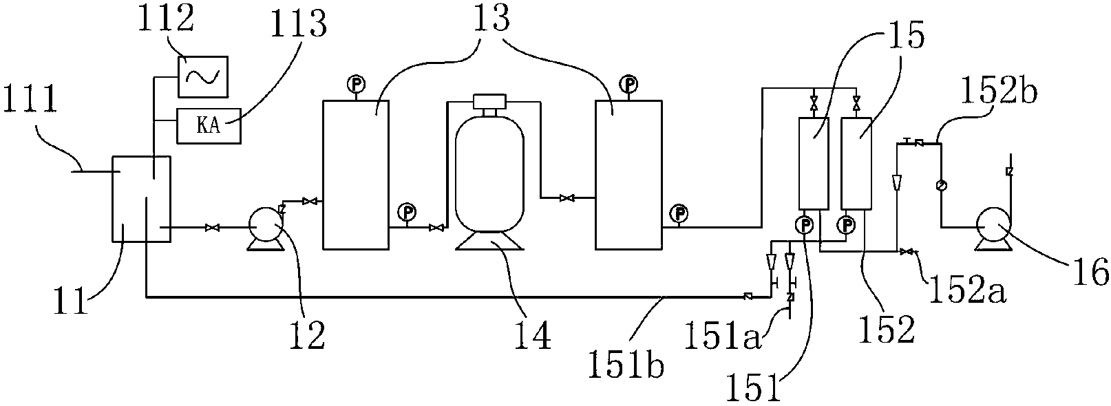 優(yōu)選地,所述納濾膜設(shè)備為兩個,所述兩個納濾膜設(shè)備通過水管同時與所述處于下游的保安過濾器連接。