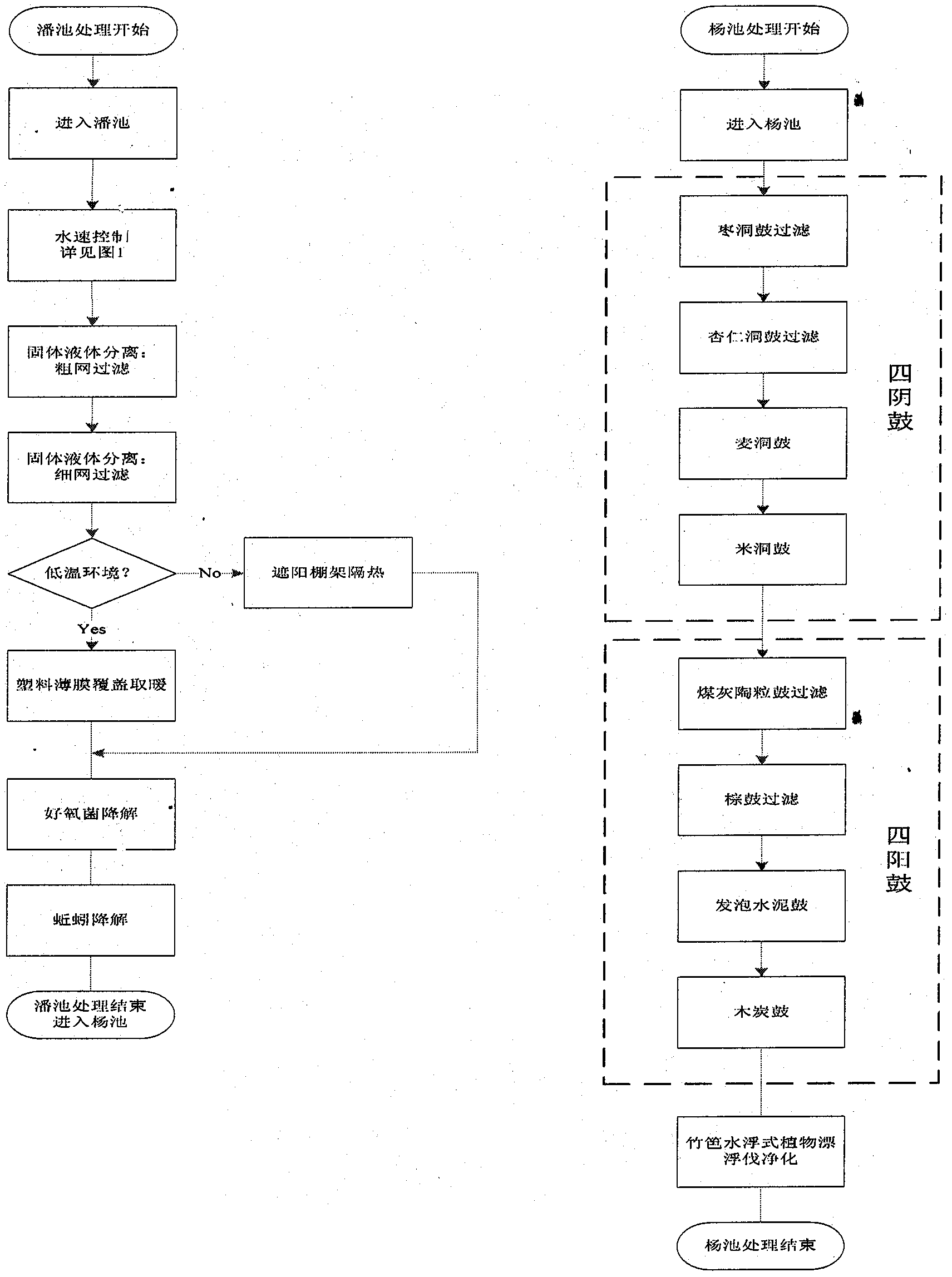 7.根據(jù)權(quán)利要求6所述的用于生活污水綜合處理方法,其特征在于:所述楊池分上下兩層,上層并由陰鼓和陽鼓組成,用于對潘池的處理水進(jìn)行過濾處理厭氧處理。