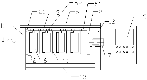 所述烘干板具有一對分別置于縱梁的兩側(cè),且烘干板與縱梁平行,烘干板與控制箱相連。