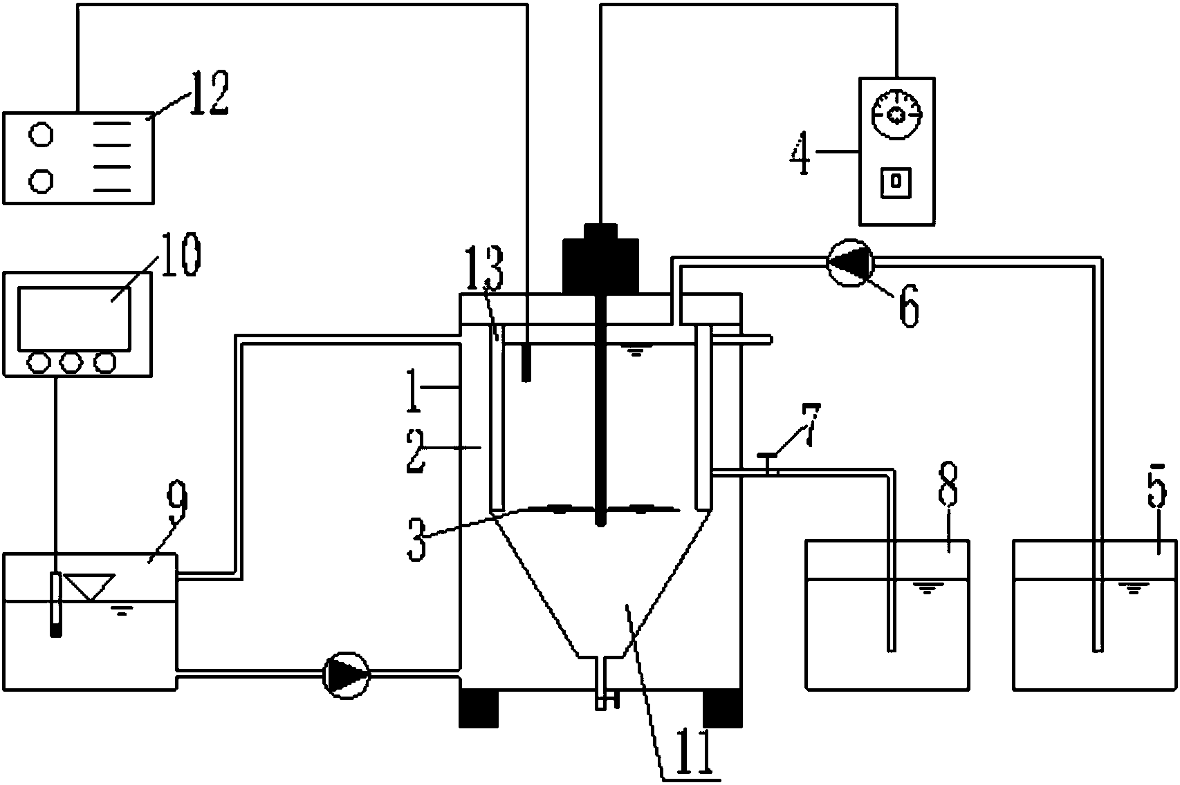 步驟3,啟動(dòng)攪拌,反應(yīng)一段時(shí)間后停止攪拌,將沉淀后的上清液排入排水箱中;