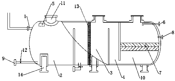 4.根據(jù)權(quán)利要求1所述的一種洗車廢水的過(guò)濾裝置,其特征在于:所述一級(jí)凈水箱(2)、二級(jí)凈水箱(3)的底部均設(shè)置有排污管(9),排污管(9)上設(shè)有排污閥(12),二級(jí)凈水箱(3)的排污管(9)位于靠近一級(jí)凈水箱(2)一側(cè)擋板和活性炭過(guò)濾層(13)之間。