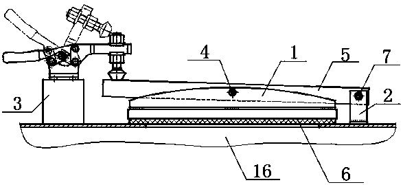 本實(shí)用新型提供的壓縮式垃圾車污水箱密封門裝置,結(jié)構(gòu)簡單,操作方便,其有益效果在于,可通過門軸實(shí)現(xiàn)密封門的自適應(yīng)定位,保證密封門與污水箱面的緊密貼合,通過調(diào)節(jié)螺母和壓緊桿的滑槽,使壓桿上下、左右位置可調(diào),提高了裝置的適應(yīng)范圍,有效地消除了安裝誤差、加工誤差的影響,適合各種污水箱加裝。