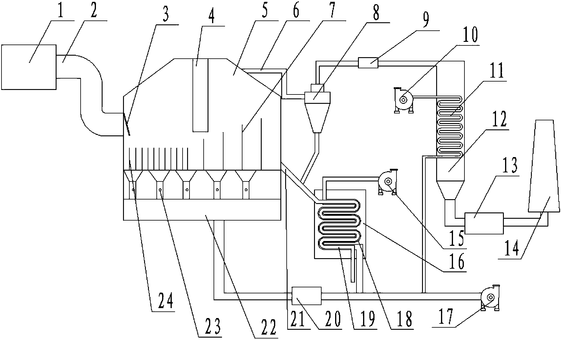 旋風分離器與換熱風道之間設置有干燥除水裝置。
