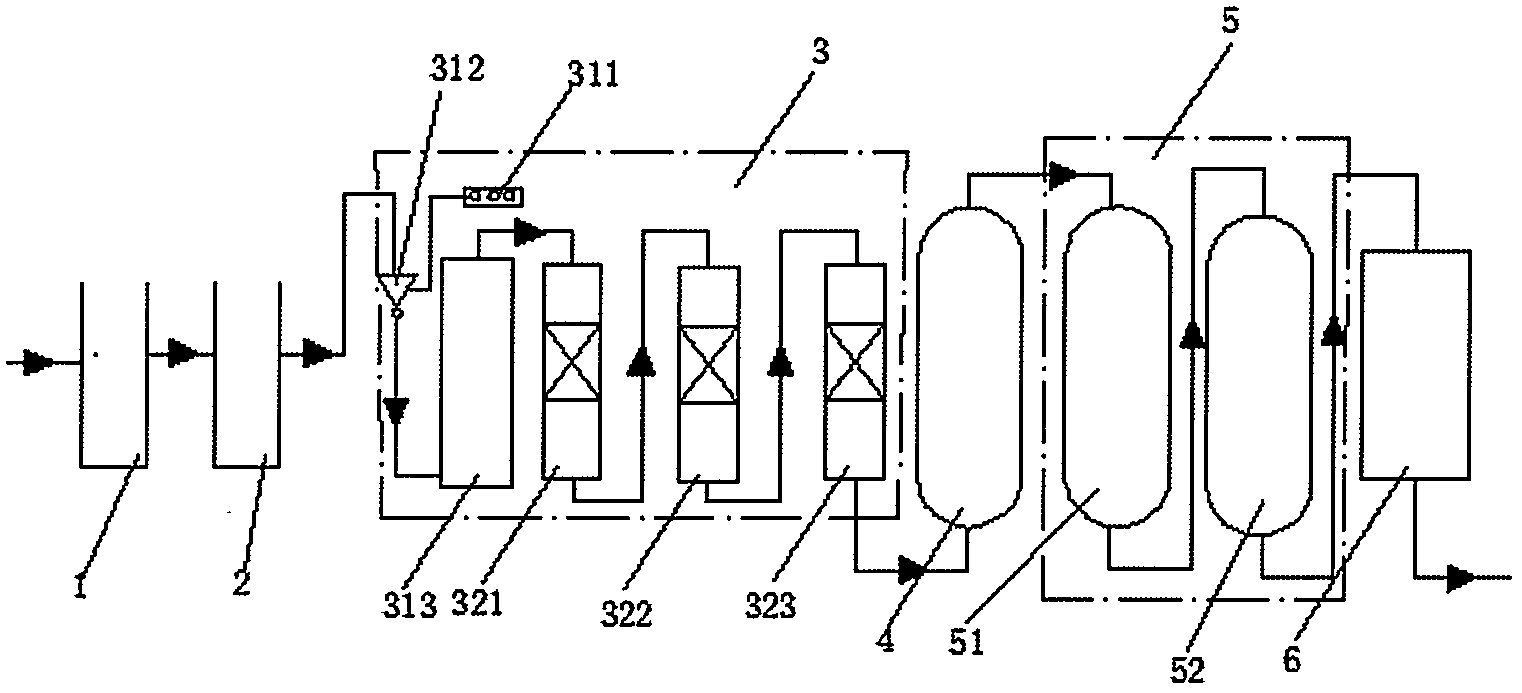 為了解決上述問題,本使用新型提供了一種稠油污水處理回用過熱蒸汽注汽鍋爐裝置,包括沉淀反應器、生物膜反應器、氧化強化生物反應器、超濾反應器、二級反滲透反應器和連續電除鹽反應器,其中,所述的沉淀反應器、生物膜反應器、氧化強化生物反應器、超濾反應器、二級反滲透反應器和連續電除鹽反應器經由管道依序連通。