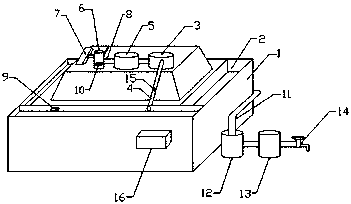 作為本實用新型的一種優選技術方案,所述第一集水箱通過第二抽水管和第二抽水泵連接,所述第二抽水泵的一側設有第二集水箱,所述第二集水箱上安裝有水龍頭。
