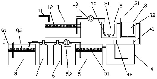 在本發明一個較佳實施例中,所述第一電化學處理箱體與第一沉淀池之間設置有第一水泵相連接,所述砂濾罐和第二沉淀池之間設置有第二水泵相連接。