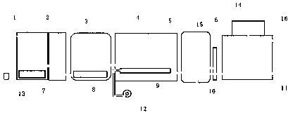 本發明的優點在于:該裝置解決了污水設施占地面積大,投資成本高、施工期長、施工圖設計繁瑣等問題,結構緊湊,設計合理,占地面積小,一次性投資小,操作簡單,污水處理運行成本低,適用范圍廣。