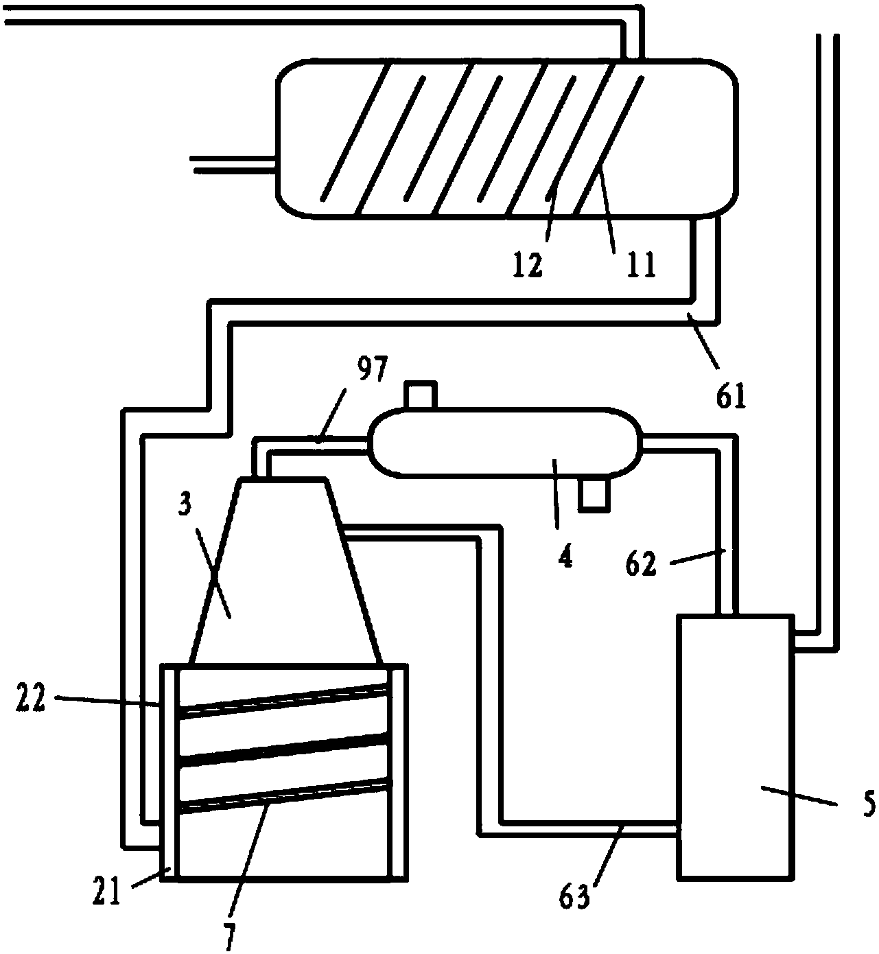 所述廢水排出口與加熱罐連通,所述加熱罐的頂部設置有廢水塔,所述廢水塔的頂部與所述冷凝器的進氣口連通,所述冷凝器的出液口與所述分液罐的上端連通;