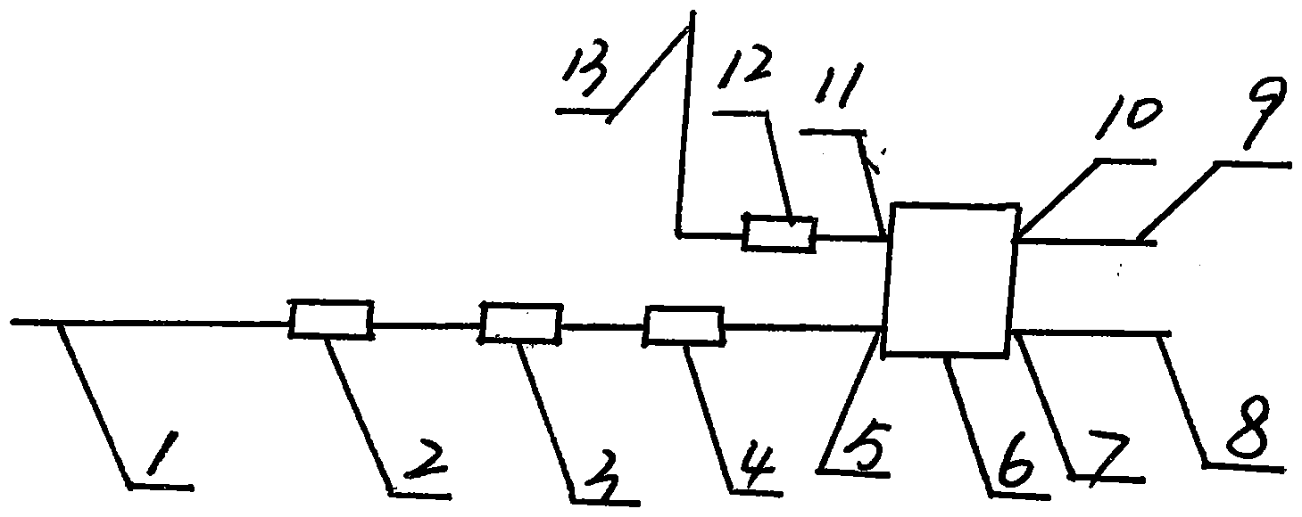 1.一種回收熱能和回收廢水設(shè)備,包括過濾器、水泵、細(xì)孔過濾器、熱交換器、水流開關(guān)和連接管件,其特征在于:過濾器的進(jìn)水口和廢熱水接口通過管件連接,過濾器的出水口和水泵的進(jìn)水口通過管件連接,水泵的出水口和細(xì)孔過濾器的進(jìn)水口通過管件連接,細(xì)孔過濾器的出水口和熱交換器的接口1Q通過管件連接,熱交換器的接口2Q和廢水回收水箱的進(jìn)水口通過管件連接,熱交換器的接口3Q和補(bǔ)入水接口通過管件連接,熱交換器的接口4Q和水流開關(guān)的進(jìn)水口連接,水流開關(guān)的出水口和熱水器或者鍋爐或者熱水水箱的進(jìn)水口連接,水流開關(guān)用來控制水泵工作,過濾器、細(xì)孔過濾器和水泵工作可以回收廢水;在使用熱水并產(chǎn)生廢熱水時(shí),熱水器或者鍋爐或者熱水水箱需要補(bǔ)水,廢熱水經(jīng)過過濾器、細(xì)孔過濾器過濾和水泵加壓后,廢熱水和補(bǔ)入水先在熱交換器內(nèi)部不同管道中反向流動(dòng),熱交換后補(bǔ)入水被加熱升溫,回收熱能。