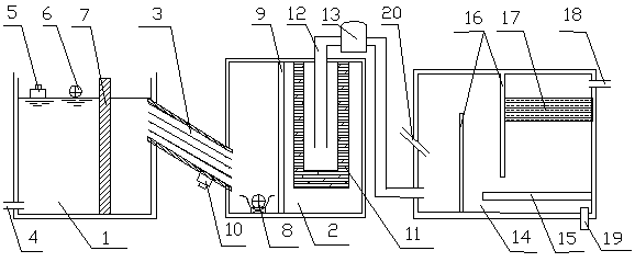 本實用新型技術方案還包括:所述斜管在靠近沉淀池的一端設置有振動器。振動器使得沉淀的泥渣沿斜管滑落至沉淀池池底,集中收集進行排污。