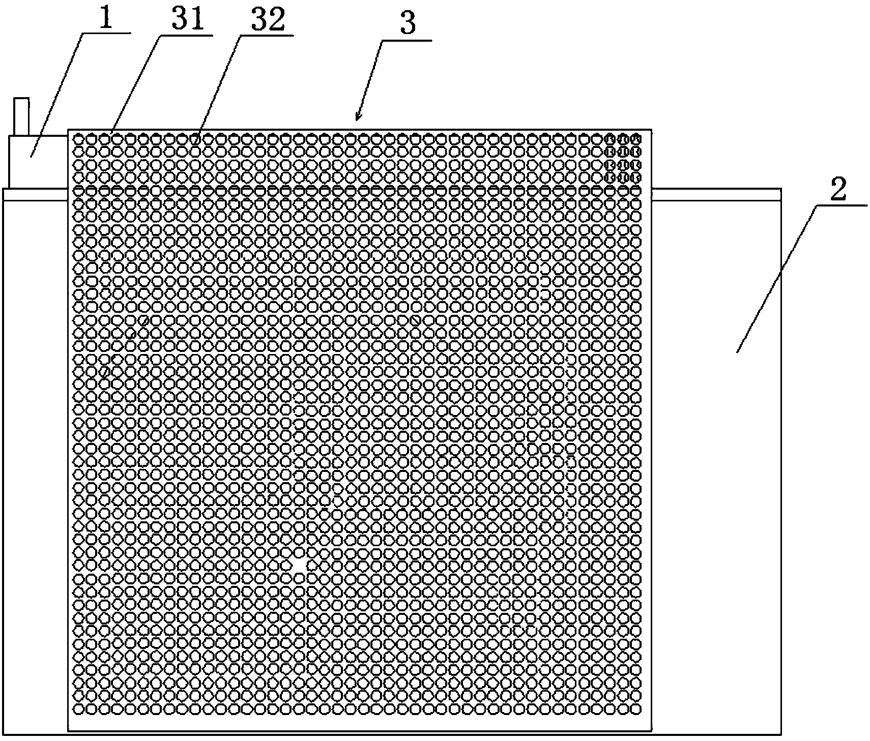 3.如權(quán)利要求2所述的空調(diào)冷凝水處理利用裝置,其特征在于,所述擴(kuò)散蒸發(fā) 構(gòu)件上設(shè)有若干通風(fēng)網(wǎng)孔,該些通風(fēng)網(wǎng)孔均勻的布設(shè)在擴(kuò)散蒸發(fā)構(gòu)件表面。