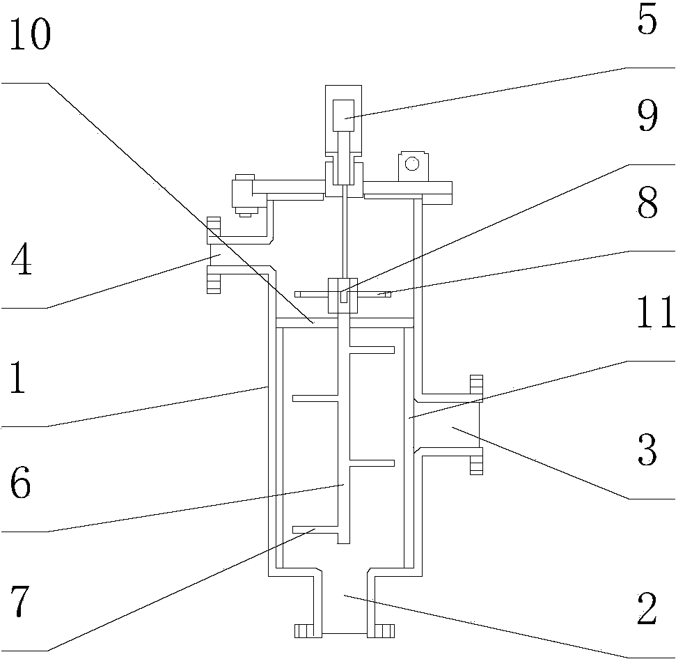 本實(shí)用新型包括筒體、過濾網(wǎng)、液壓活塞、吸嘴、液壓馬達(dá)、擋板、吸污 管和出水彎管,所述筒體上設(shè)置有進(jìn)水口、出水口和排污口,所述過濾網(wǎng)安裝 于所述筒體的內(nèi)壁且緊靠所述筒體內(nèi)壁,所述擋板安裝于所述筒體內(nèi)且靠近所 述排污口的下側(cè),所述液壓馬達(dá)安裝于所述擋板的上方,所述吸污管的第一端 穿過所述擋板的中心并與所述液壓馬達(dá)連接,所述吸污管的第二端位于所述筒 體內(nèi)下方并靠近所述進(jìn)水口,所述吸污管上安裝有多個(gè)所述吸嘴,所述液壓活 塞穿過所述筒體的頂端后與所述液壓馬達(dá)固定連接,所述出水彎管安裝于所述 液壓馬達(dá)上且與所述吸污管連通。