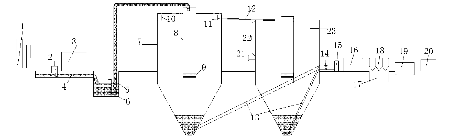 進(jìn)一步地,所述主沉淀容器與蓄水沉淀容器均為上部圓柱形下部錐形 且下部均安裝在地下。