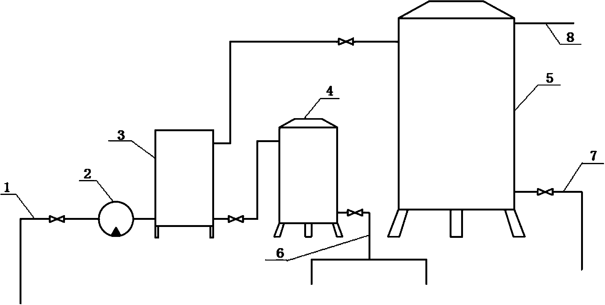本實用新型屬于工業(yè)節(jié)水和廢水處理技術領域,具體的說是一種節(jié)能水處理系統(tǒng),包含供水總管、與供水總管連接的增壓泵、與增壓泵連接的制純水機、分別與制純水機連接的純水箱和回水箱;供水總管將自來水引入增壓泵,通過增壓泵將自來水送入制純水機,由制純水機對自來水進行處理;處理后產(chǎn)生的純水由制純水機送入純水箱,處理后產(chǎn)生的廢水由制純水機送入回水箱。同現(xiàn)有技術相比,經(jīng)濾處理后的純水流入純水箱以便提供給生產(chǎn)車間進行使用。而經(jīng)過濾處理后的廢水流入回水箱,由于廢水也是經(jīng)制純水機進行過粗濾后獲得的,所以比一般的自來水更潔凈,可用作衛(wèi)生間用水,從而提高了水的利用率,節(jié)省了水資源,更加環(huán)保。
