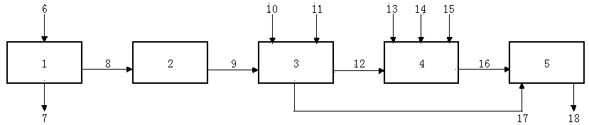 一種以造紙污泥為原料生產(chǎn)有機(jī)肥的機(jī)械裝置,包括:污泥脫水機(jī)1、污泥烘干機(jī)2、破碎機(jī)3、發(fā)酵池4、摻混機(jī)5;其特征是:污泥脫水機(jī)1上設(shè)有造紙污泥進(jìn)口6、污水出口7,污泥脫水機(jī)1和污泥烘干機(jī)2之間設(shè)有第一輸送機(jī)8,污泥烘干機(jī)2和破碎機(jī)3之間設(shè)有第二輸送機(jī)9,破碎機(jī)3上設(shè)有復(fù)合氨基酸螯合微量元素進(jìn)口10、復(fù)合腐植酸螯合微量元素進(jìn)口11,破碎機(jī)3和發(fā)酵池4間設(shè)有第三輸送機(jī)12,發(fā)酵池4上設(shè)有水進(jìn)口13、有機(jī)肥發(fā)酵劑進(jìn)口14、殺菌除臭劑進(jìn)口15,發(fā)酵池4和摻混機(jī)5間設(shè)有第四輸送機(jī)16,破碎機(jī)3和摻混機(jī)5間設(shè)有第五輸送機(jī)17,摻混機(jī)5上設(shè)有成品出口18。