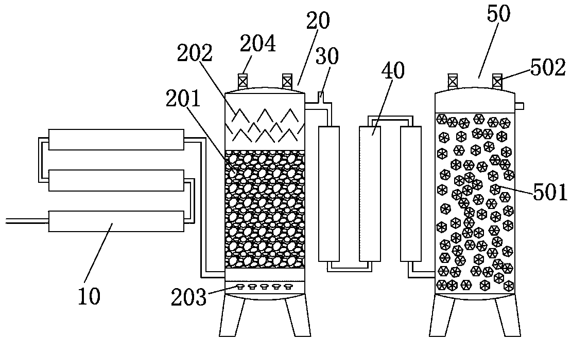 優(yōu)選的,還包括第一S行排列的折流管,所述的第一S行排列的折流管設于一級處理罐前,所述的第一S行排列的折流管呈橫向排列,使得進入的廢水呈S形流動,增加混合時間,使得廢水更均質,起到調節(jié)混勻作用。