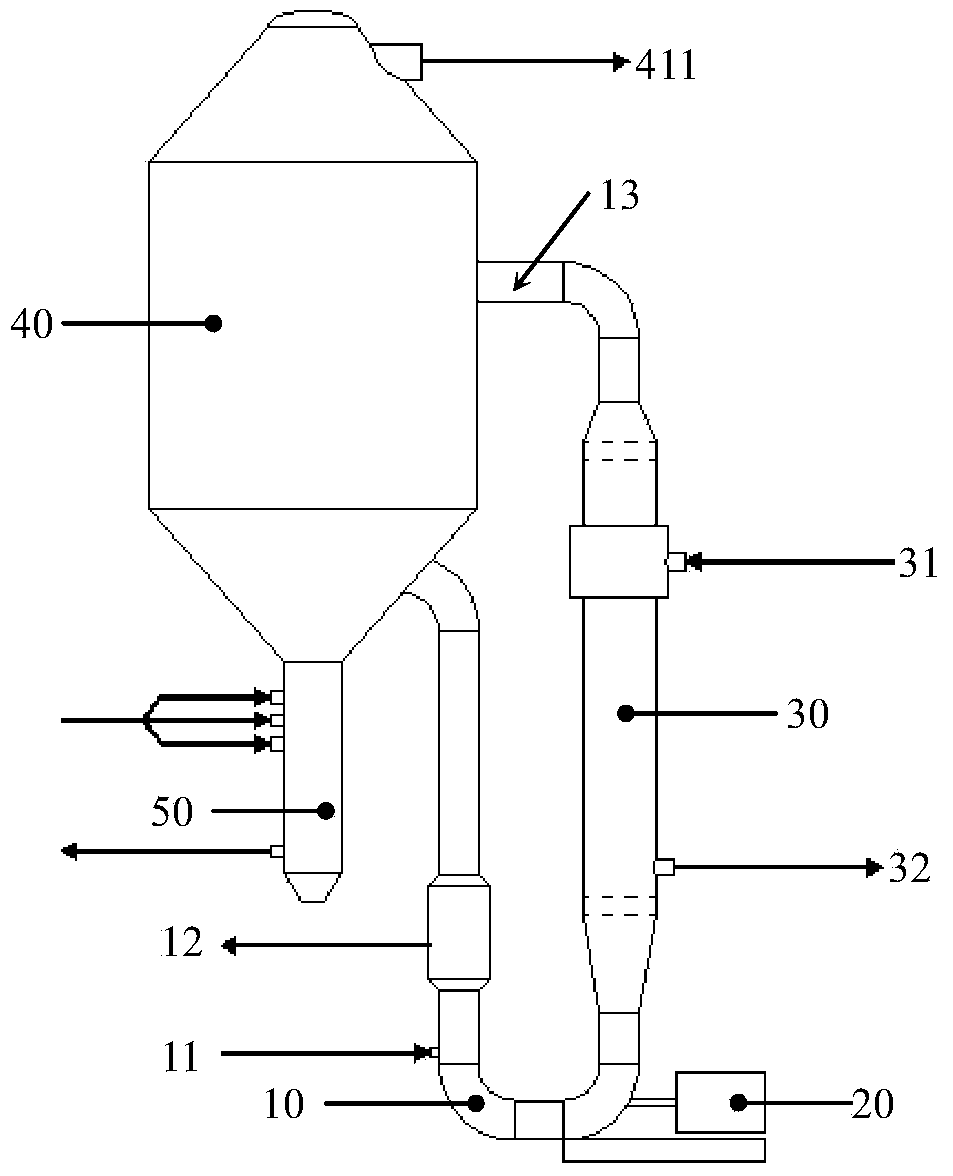 根據本發明的另一具體實施方式,第一循環水入口的下方還設置有第二循 環水入口,第二循環水入口與循環管道連接,用于向閃蒸罐的底部和/或鹽洗滌 腿的頂部噴入經加熱裝置加熱的廢水。例如,經加熱裝置加熱后,5-15%體積的 過熱廢水由第二循環水入口進入閃蒸罐的底部和/或鹽洗滌腿的頂部,85-95%體 積的過熱廢水由第一循環水入口進入閃蒸罐內。