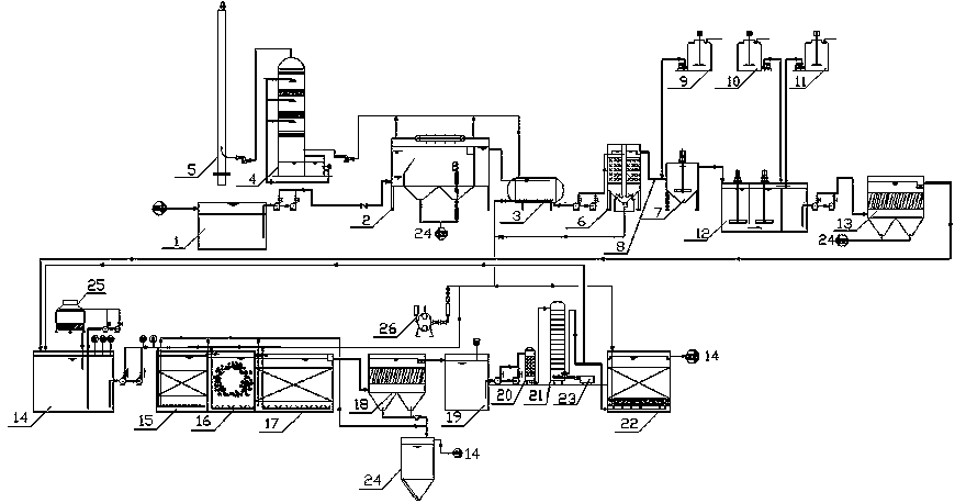 所述高效氣浮反應器和酸化罐頂部與吸收塔連接,所述吸收塔連接排氣筒;