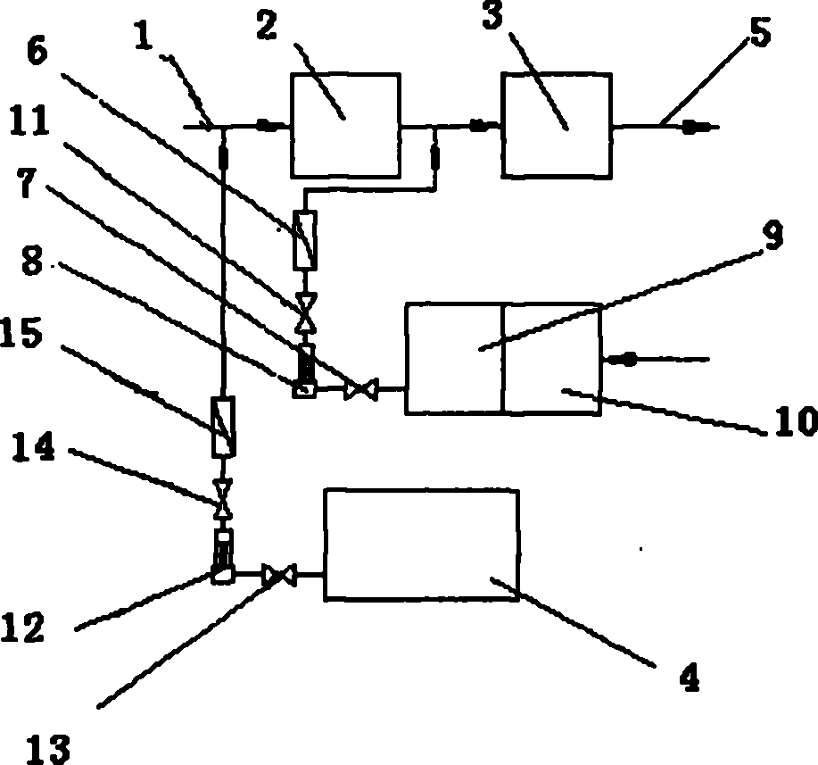 1.一種化學(xué)方法去除污水中高含量無(wú)機(jī)磷裝置,包括進(jìn)水pH值調(diào)節(jié)池、絮凝池加藥泵、熟化池、投料池及硫酸罐,其特征在于所述的進(jìn)水pH值調(diào)節(jié)池連接進(jìn)水管,絮凝池連接出水管,投料池與熟化池相鄰且相連通,熟化池通過管路經(jīng)第一加藥泵與進(jìn)水pH值調(diào)節(jié)池與絮凝池之間的管路相連接,且相連通,第一加藥泵的進(jìn)水管路上裝設(shè)有第一閥門,第一加藥泵的出水管路上裝設(shè)有第二閥門和和第一流量計(jì),硫酸罐通過管路經(jīng)第二加藥泵與進(jìn)水管相連接,且相連通,第二加藥泵與硫酸罐之間的管路上裝設(shè)有第三閥門,第二加藥泵與進(jìn)水管之間的管路上裝設(shè)有第四閥門和第二流量計(jì)。