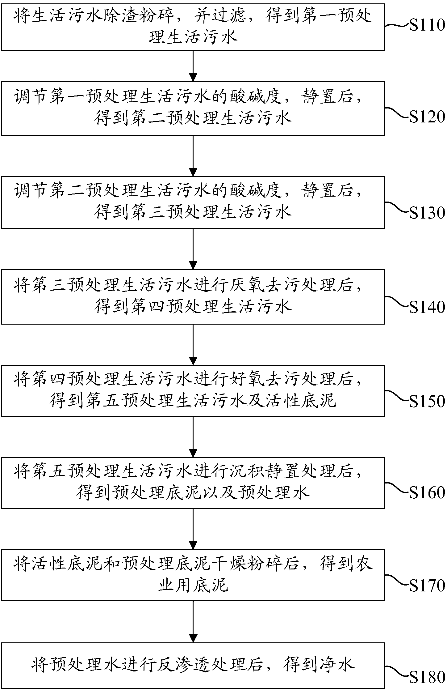將所述第五預處理生活污水進行濃縮靜置處理后,得到預處理底泥以及預 處理水;
