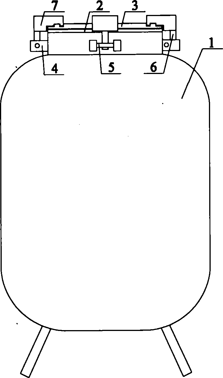 在水處理系統(tǒng)中,承壓裝置起著至關(guān)重要的作用,為了使水處理過程 順利進行,承壓裝置要時刻處于密封狀態(tài),現(xiàn)有承壓裝置的密封結(jié)構(gòu)是在 法蘭盤和蓋體之間放置密封墊片,然后利用螺栓鎖緊。當(dāng)內(nèi)部壓力很大時 容易將密封墊片頂起,這樣就起不到密封作用,使得承壓裝置的密封性和 可靠性較差,而且鎖緊螺栓時費時費力,增加了工作人員的勞動強度,影 響了工作效率。
