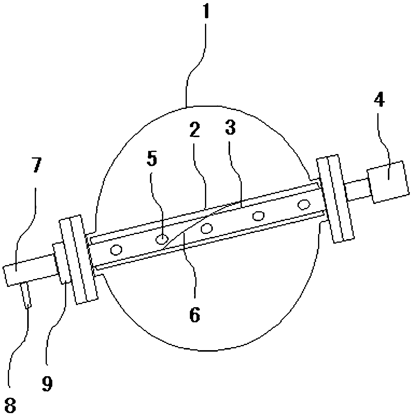 1.污泥在線(xiàn)脫水器,其特征在于,包括反應(yīng)器(1)、過(guò)濾網(wǎng)(2)、空心軸(3)及旋轉(zhuǎn)電機(jī)(4);所述空心軸(3)固定設(shè)于過(guò)濾網(wǎng)(2)內(nèi);所述過(guò)濾網(wǎng)(2)置于反應(yīng)器(1)內(nèi);所述旋轉(zhuǎn)電機(jī)(4)的動(dòng)力輸出端與空心軸(3)的一端固定相接;在所述空心軸(3)上設(shè)有吸水孔(5)。