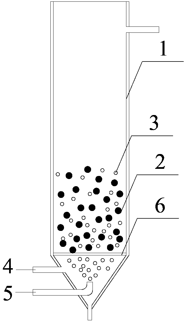 水面或酸液液面在填料上方0.1~1m處;填料相互碰撞5min~2h后靜置沉淀 5~60min,將沉淀物排出;完成填料相互碰撞后,排出酸液,用水將填料洗至中 性;