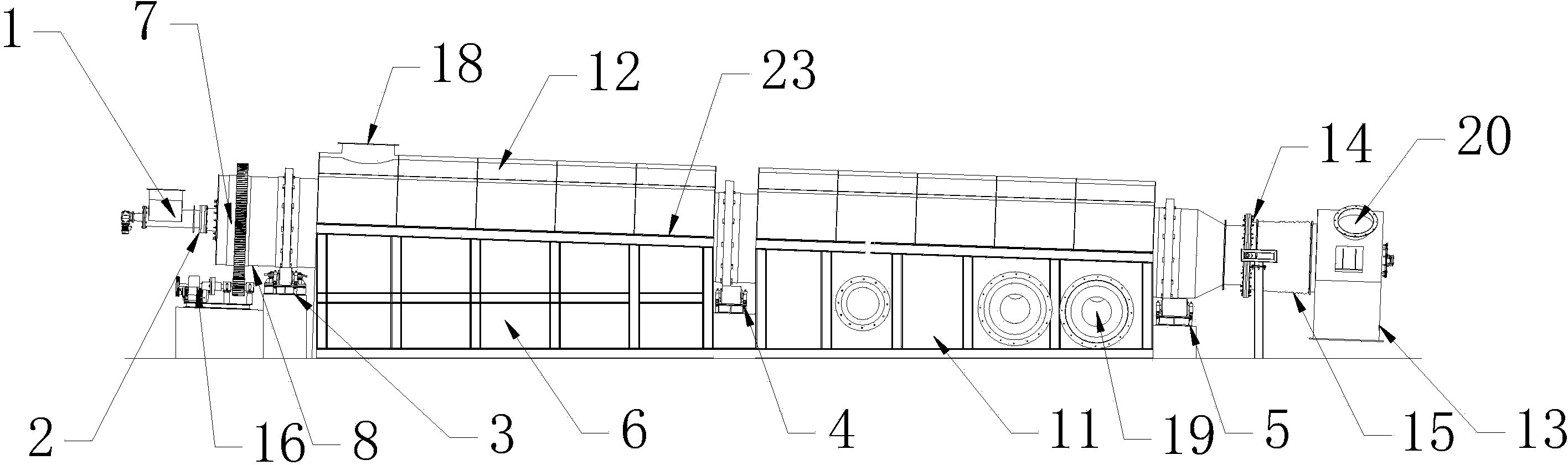 具體地,所述筒體的進料端設有傳動裝置,傳動裝置包括小齒輪和大齒圈,大齒圈與小 齒輪嚙合傳動。