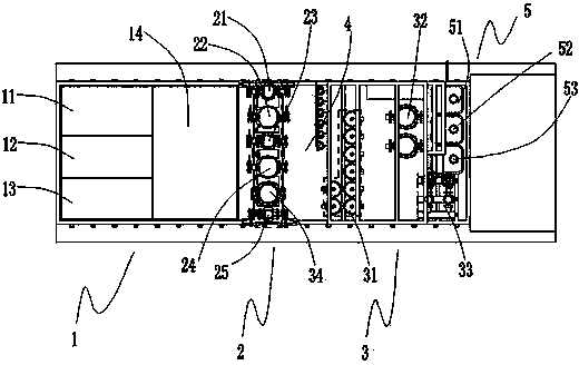 1.一種移動式電力專用水處理裝置,包括儲水系統、增壓系統、過濾系統、檢修通道和加藥系統,其中,