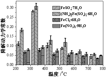 本發(fā)明中,所述鐵鹽為FeSO4•7H2O、(NH4)2Fe(SO4)2•6H2O、FeCl3•6H2O或Fe(NO3)3•9H2O中任一種。