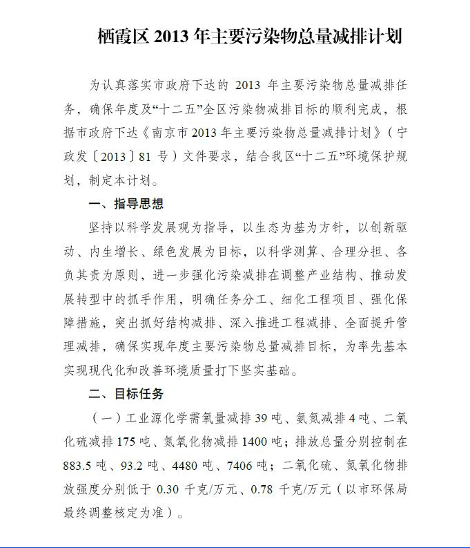 南京市棲霞區2013年主要污染物總量減排計劃