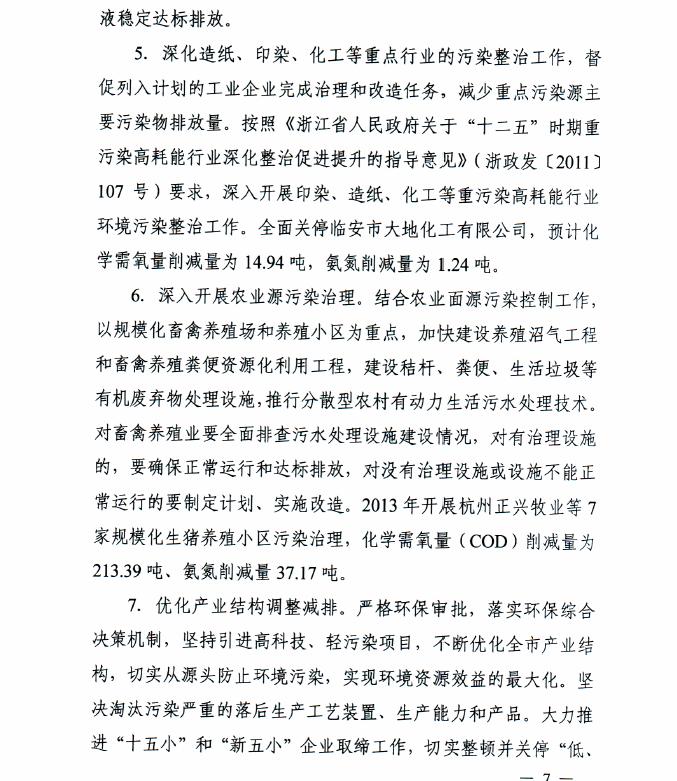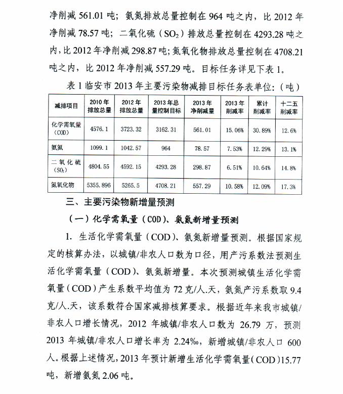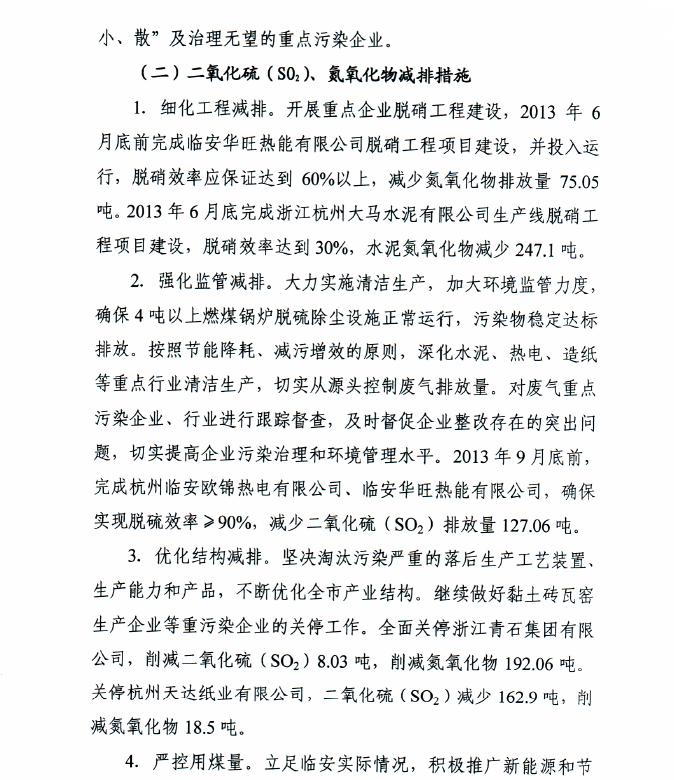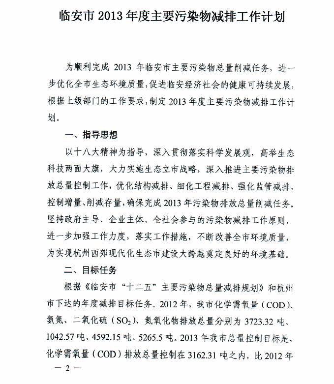 臨安市2013年度主要污染物減排工作計劃