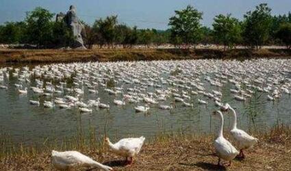 鵝場的污水主要是鵝舍沖洗廢水和設備沖洗水,污水不能任其排放。一般須先經物理處理(機械處理),再進行生物處理后排放或循環(huán)使用。物理處理是使用沉淀、分離等方法,將污水中的固形物分離出來,固形物能成堆放置,便于貯存,可作堆肥處理。液體中有機物含量較低時,可用于灌溉農田或排入魚塘;有機物含量仍很高時,應再進行生物處理。生物處理是將污水輸入氧化池、生物塘等,利用污水中微生物的作用,通過需氧或厭氧發(fā)酵來分解其中的有機物,使水質達到排放要求。