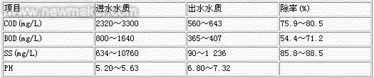 設計按當時的GB8978—88現有企業欄標準,即:CODCr≤150mg/L; BOD5≤60mg/L; SS≤100mg/L;pH=6~9。UASB進出水水質和混合水經主體處理系統的進出水水質見表1和表2。可見處理后的出水水質好于設計采用的標準值,全部達標排放。具體參見http://m.dongaorq.cn更多相關技術文檔。