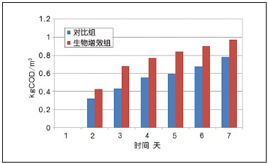 圖6 生物增效實(shí)驗(yàn)中COD消減量的比較