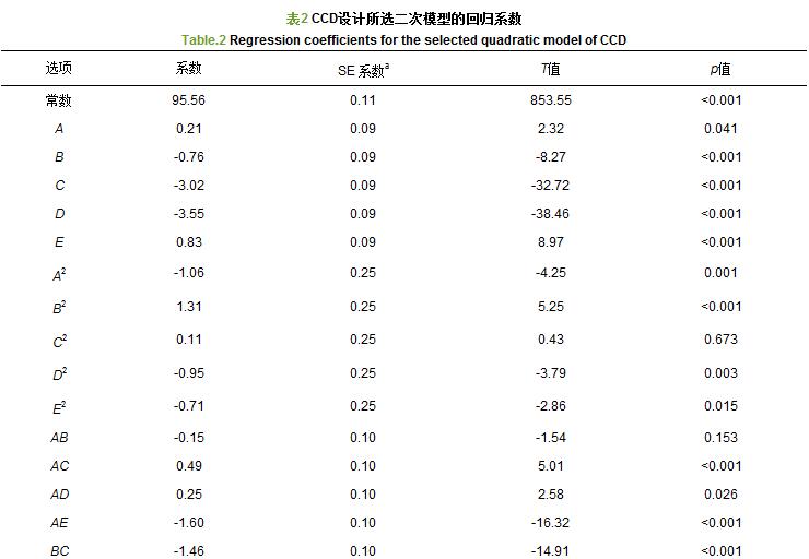 CCD實驗設計數據采用Minitab 14.0軟件進行統計分析.
