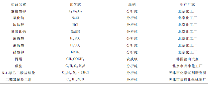 實驗所用化學試劑詳見表1。