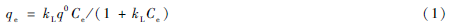 式中:kL為與吸附能相關的常數;q0為單分子層飽和吸附量(mg/g);Ce為吸附平衡時溶質的質量濃度(mg/L);