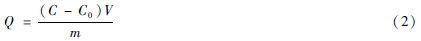 式中:C0為C r(VI)離子溶液的初始濃度(mg/L);C為Cr(VI)離子溶液的終點濃度(mg / L);V為溶液的體積(L);m為所取纖維的質量(g) ;Q為纖維對Cr(VI)離子吸附容量(mg/g)。