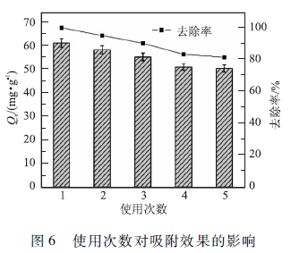 從圖6中可看出,經3次循環使用后,改性纖維的脫附能力略有下降但變化不大,經過5次吸附后,改性纖維的吸附量仍可以達到第一次吸附量的80%以上,因此從整體來看,使用次數對改性纖維的吸附能力影響不大,說明再生過程中H2SO4不會對吸附材料的偕胺肪基官能基團產生明顯破壞,AOPANFmw具有良好的化學穩定性;另一方面,這也表明制得的AOPANFmw具有可循環使用的優點,在重金屬污染廢水處理領域具有廣闊的應用前景。具體參見污水寶商城資料或http://m.dongaorq.cn更多相關技術文檔。